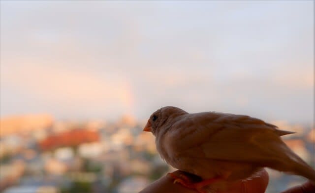 今日夕方、虹の根元が見えていたのでこぴにも見せてあげました。