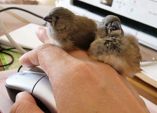 まだヒナイチもヒナニも私の手から「育て親」でご飯を食べてくれます。