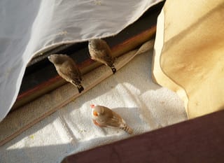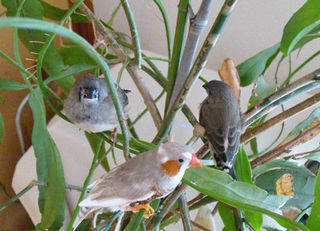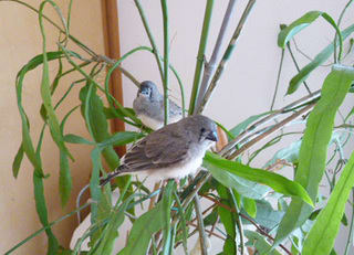 月下美人の枝の上で。ことりたちにとってはジャングルジムみたいなものかな