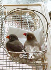ふと見ると、うちの仲良し親子がワイヤーのカゴに納まっていました。