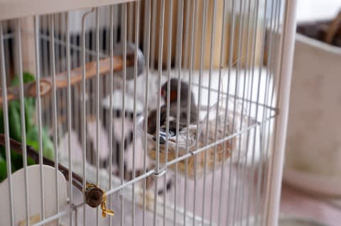 ことり るぴの豆苗巣作り 2 前回のるぴが作った豆苗の巣。豆苗の緑の香りがすごかったので、紙を細く切った緩衝材をカゴに入れてみた。まんまと運び入れた様子覗いてみると。。。狭いところに仲良く2羽が。かわいいなあ仲良し、仲良し 2019.07.27 ことり