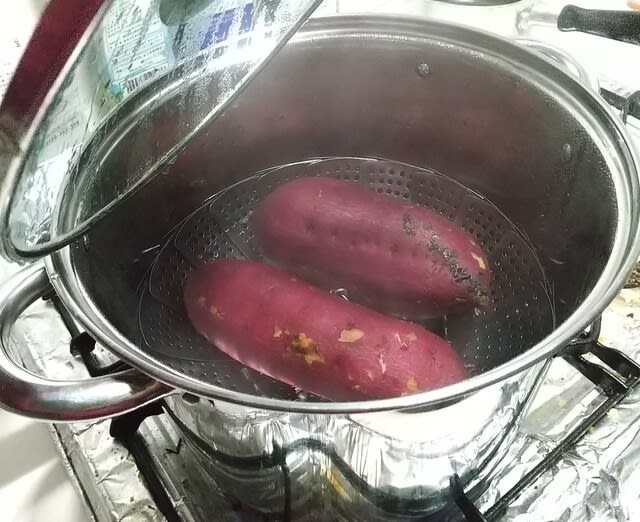 いつも楮を煮る鍋で紅はるかを蒸して