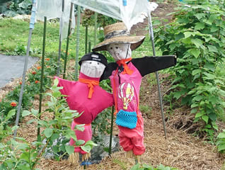 他にもハウスの苗や畑を見せていただき、かわいい夫婦案山子を見つけ