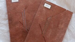 これは前に使っていたコウゾを叩く角材の上。
