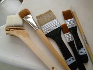 私、半日の作業で、刷毛や筆だけでこんなに使ってるんだ!