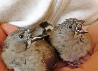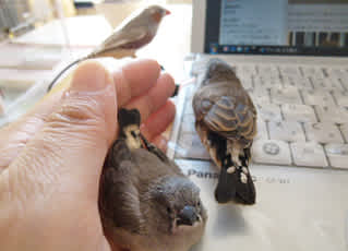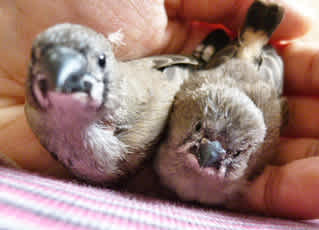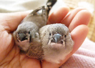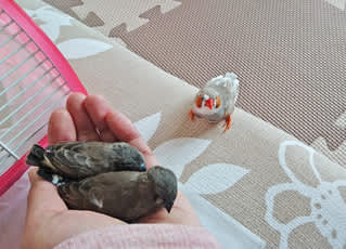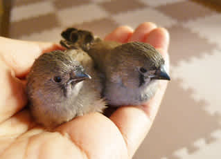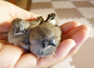 ちらっと寄ってみたら、なんと!手乗りのキンカチョウのヒナと