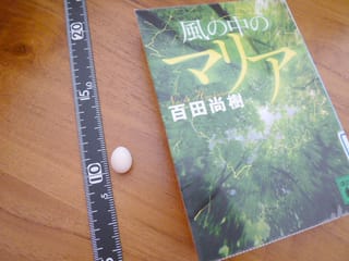 今朝はるーはテーブルの下で大きな卵を産んでいました。