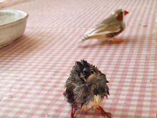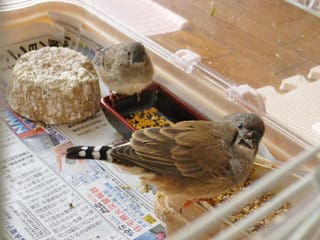 寄ってきました。食欲旺盛のヒナたち。左がこるで右がるぴ。