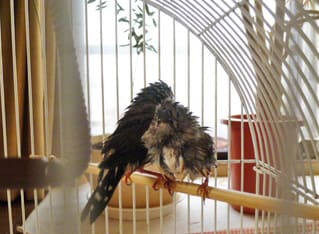 今は月下美人の枝でお昼寝中。好きに飛び回ってるけど、自分でご飯を