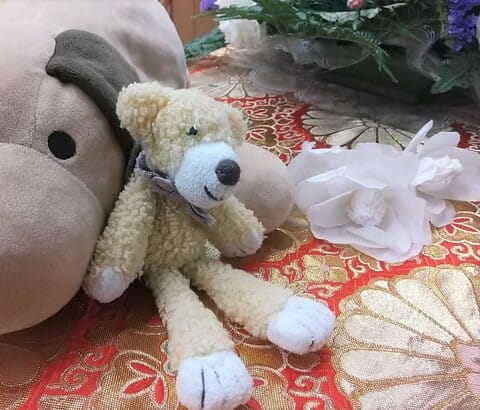 家に戻れなくなってからずっと握りしめていた犬の(病院では看護師さんにクマちゃんと言われてたけど)ぬいぐるみと一緒に。