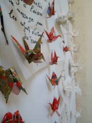 会場では加納先生の折り鶴を糸につなぐワークショップのお手伝いをした。