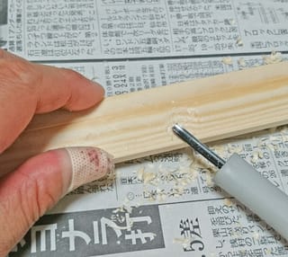 彫刻刀でコリコリ細工をしている時に、指を刺してしまいました
