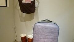 本物のスーツケースで形をとって、またまた糸で縫って立体的に仕上げました。