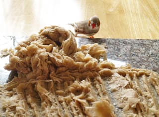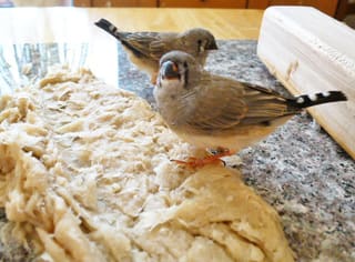 その、ミツマタの繊維を叩いていると、お腹をすかせたヒナたちが
