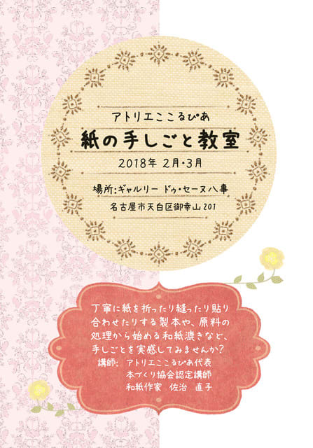 持ち物:筆記用具。和紙漉きはタオルとデザインに使う物があれば。
