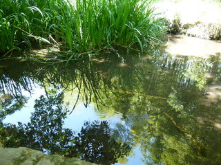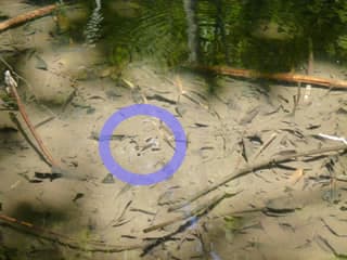 水面にはアメンボの姿も。○の中の影、わかりますか?左向き。