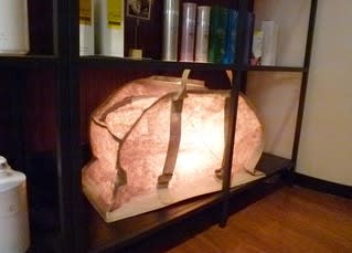 待合エリアのガラスの棚の中には初代バッグのあかりも置いてみました。