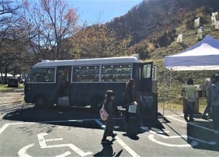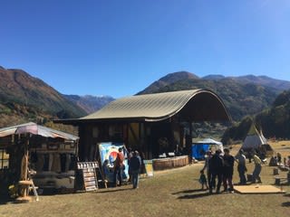 クラフトのブースや飲食のテントが並ぶ大鹿村の