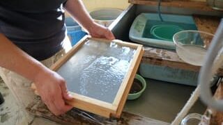 その後、私が本の表紙などに使っている布、遠州綿紬のショップへ。