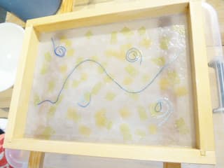 妹ちゃんたちも漉き網に向かうとデザインを考えるのに集中!