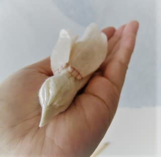 翼の部分は蘇芳で薄く染めた淡い桃色。